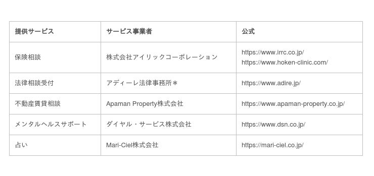 利用時間:各社異なるため、詳細は下記「オンライン相談サービス」公式サイトを参照ください