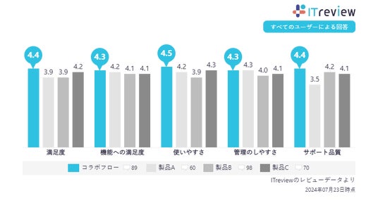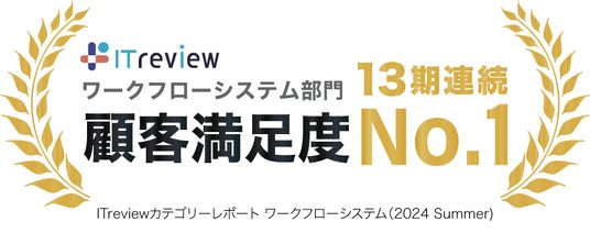 2024年6月までに掲載されたレビューを元に「ITreview カテゴリーレポート 2024 Summer」が発表され、コラボフローがワークフローシステム部門の13期連続「顧客満足度No.1」に選ばれました。