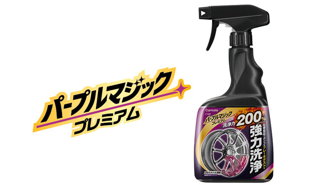 株式会社カーメイト(本社:東京都豊島区)は、化学反応でブレーキダストや鉄粉を除去する『パープルマジック』シリーズより、洗浄力をこれまでの2倍にした『パープルマジックプレミアム ブレーキダストクリーナー』を4月8日(金)に発売いたしました。従来品(PS60)の2倍の洗浄力でありながら、アルミホイールにやさしい新処方(特許出願済)となっております。詳細は以下をご覧ください。