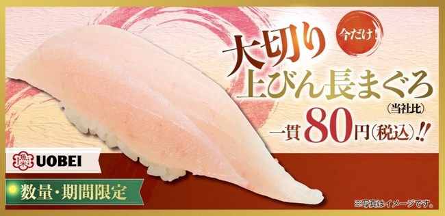 寿司レストランチェーンを展開する元気寿司株式会社(本社:栃木県宇都宮市 代表取締役社長法師人尚史)は、2022年8月5日(金)より全国の魚べいにて、「大切り上びん長まぐろ」を数量限定で販売いたします。バイヤー厳選の新鮮な良質なびん長まぐろをこの機会にご堪能ください。