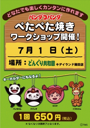 ※どんぐり共和国 アリオ鳳店でも、7月2日(日)にパパンダ着ぐるみの撮影会とペタペタ焼きのイベントを開催いたします。