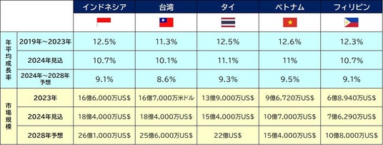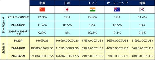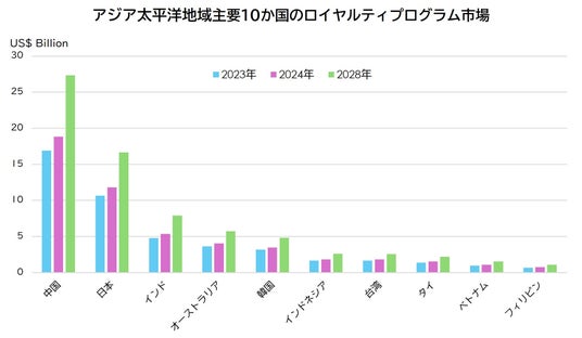 アジア太平洋地域は国ごとに市場規模に差はあるものの、成長率はおおむね同様の伸びを示しています。これは、ロイヤルティプログラムの成長が各国の経済規模に関わらず、すべての国でほぼ同時期にデジタル化が普及し、同じスタートラインから同様に展開が進んだからではないかと思われます。