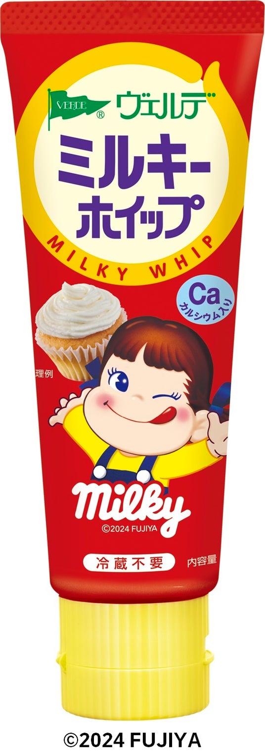 アヲハタ株式会社(本社:広島県竹原市、代表取締役社長:山本範雄、以下アヲハタ)は、株式会社不二家(本社:東京都文京区、代表取締役社長:河村宣行、以下不二家)とタイアップし、「ヴェルデ ミルキーホイップ」を新発売します。長年、“ミルキーはママの味♪”で愛されている不二家のロングセラーキャンディ「ミルキー」をふんわり軽く、口どけなめらかなホイップに仕立てました。パッケージデザインに不二家のキャラクター“ペコちゃん”を採用しています。