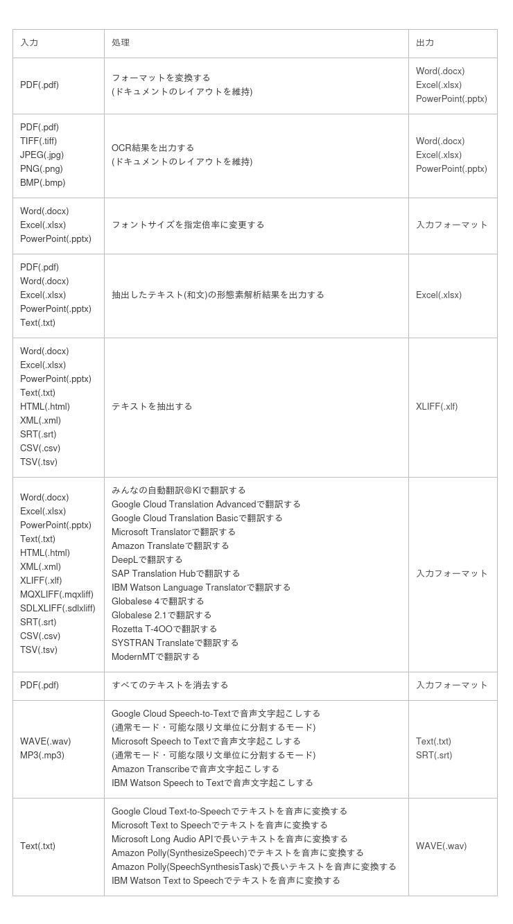 「多種多様な変換・加工・機械翻訳をワンストップで提供、処理の組み合わせも自由自在」