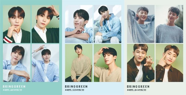 「SEVENTEEN」は韓国の13人組のグループ。メンバーはデビュー当時から世界各国の音楽チャートで軒並み1位を獲得するなど歌手としてはもちろん、ラジオやバラエティ番組、モデル活動など多方面で活躍し話題を集めています。「K-POPリーダー」として愛されているSEVENTEENのメンバーの中からHOSHI、DK、SEUNGKWANがBRING GREENのモデルとなりました。