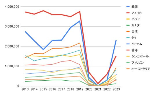 コロナ禍以降、気軽にいける海外渡航先として注目を集めている韓国。昨今の韓国ブームも後押しし、2023年の日本人の海外渡航先がアメリカを抜いて一位となっています。