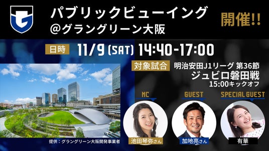 今年9月にオープンしたグラングリーン大阪内にあるロートハートスクエアうめきたにて、アウェイで開催される11/9(土)明治安田J1リーグ 第36節 ジュビロ磐田戦におきまして、グラングリーン大阪では初開催となるパブリックビューイングを実施することとなりました。