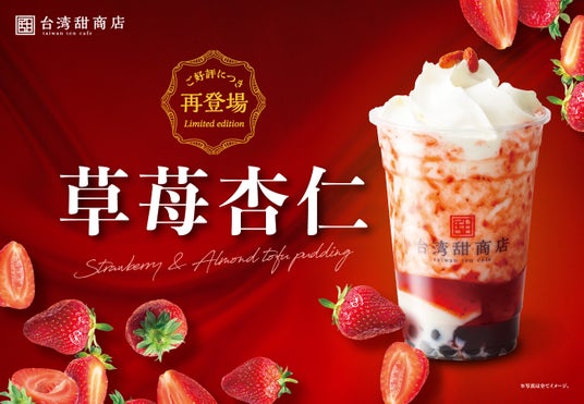 台湾の美食とスイーツ専門店『台湾甜商店(たいわんてんしょうてん)』(運営:グレイス株式会社、本社:大阪市北区、代表取締役:管 卓明)は、2024年11月27日(水)より、2022年の発売から冬の定番商品として人気を博している「草苺(いちご)杏仁ミルク」を今年も期間限定で販売します。さらに、販売日同日には公式LINEにて、草苺杏仁ミルクが50円引きにてご注文いただけるクーポンを配信します。