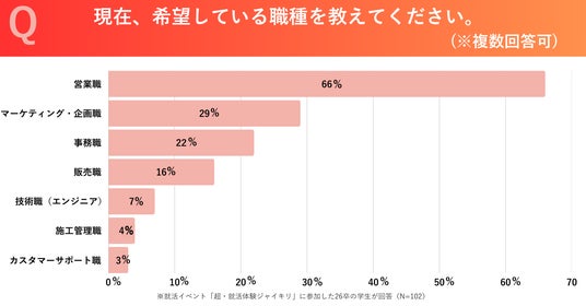 ■体育会系学生が希望する職種、最多は「営業職」66%