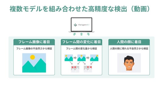 当社は、2021年よりディープフェイク技術やそれらが社会へもたらす影響について着目し、国内でも先行して技術の研究開発に取り組んで参りました。そして近年、生成AIによるフェイクコンテンツの高度化が進み、情報の信頼性という社会課題が顕在化してきています。このような社会課題に対応するため開発したのが「KeiganAI」です。「KeiganAI」という名前は「本質を見抜く」という意味の「慧眼(けいがん)」に由来し、あらゆる情報の中から真実を見抜く慧眼を提供していくという想いを込めています。