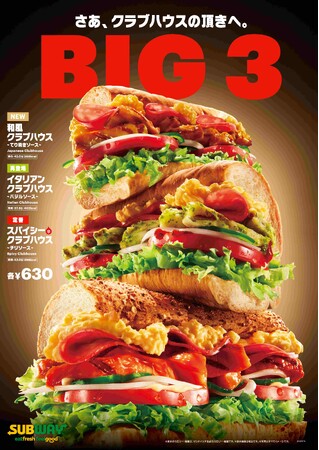 サブウェイの年末年始恒例、クラブハウスサンドの季節がやってきました!昨年を上回るボリューム感をキープし、今年は選べる3種のクラブハウスサンドをラインアップしました。