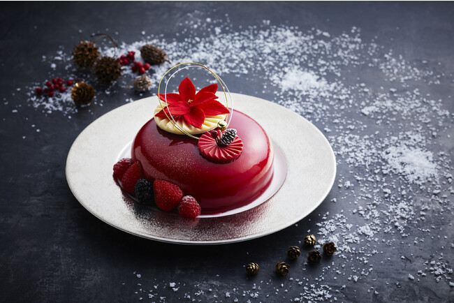 芸術性溢れる見た目だけでなく、食材の組み合わせや、ミリ単位で配分を調整したケーキの層など、ペストリー料理長 生野剛哉のこだわりが細部まで宿る特別なケーキの数々がホリデーシーズンを彩ります。