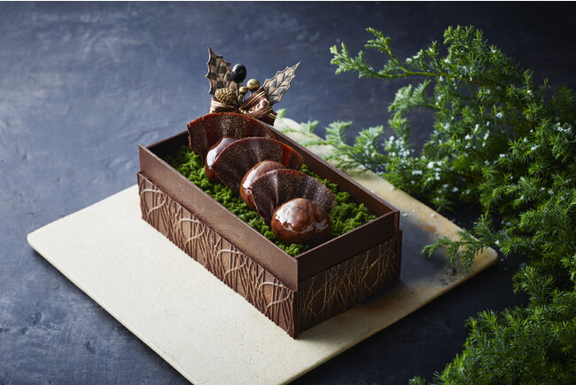 今年のラインナップには、チョコレートで組まれた2段の重箱にケーキやショコラなどがぎっしりと詰められた「玉手箱」、香り高いブランド苺をふんだんに使用した「嘉山農園の苺ショートケーキ」、スパイスのアクセントが効いた大人向け「シュトーレン」の定番3品に加え、オレンジの香りと酸味がアールグレイをより華やかに引き立てる「オレンジ・アールグレイ」、ビスキュイにたっぷりのウイスキーをしみこませた大人な味わいの「抹茶栗のモンブラン」、苺の甘酸っぱさと白ワインの風味が好相性な「フレーズ・シャルドネ」、ブルーベリー、ブラックチョコレートにナツメグを合わせた「タルトショコラ・ミルティーユ」の新作4品をご提供いたします。