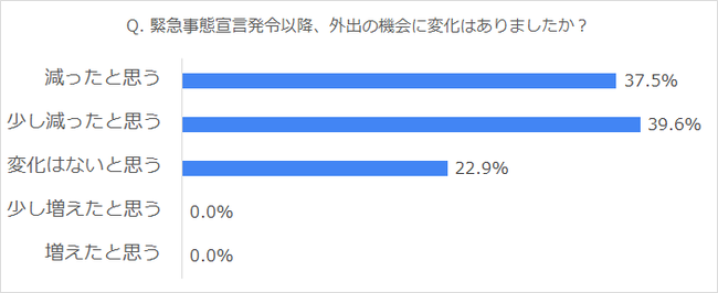 77%の回答者が、緊急事態宣言発令を受けて外出の機会が減った
