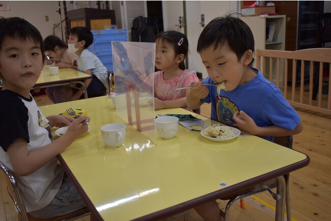都内のこども園の年長さんに『こどもそうめん』を食べてもらいました。10cmの麺はくるくる巻いて食べるのにちょうど良い長さ。こども園の先生からは、「10cmがちょうど良くて食べやすそう」「何度もおかわりしていたね」とこどもが喜んで食べてくれた様子をコメントいただきました。調理師さんからは「こども向けに乾麺を折ったりしなくて良いので楽チン」「食塩無添加だからおかわりも安心」と調理時の手間や栄養面について嬉しい声をいただきました。