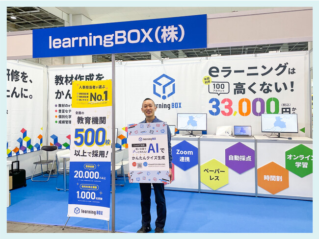 弊社ブースではeラーニングシステム「learningBOX」についてご紹介し、実際の操作画面を体験いただけるデモンストレーション等も実施しました。