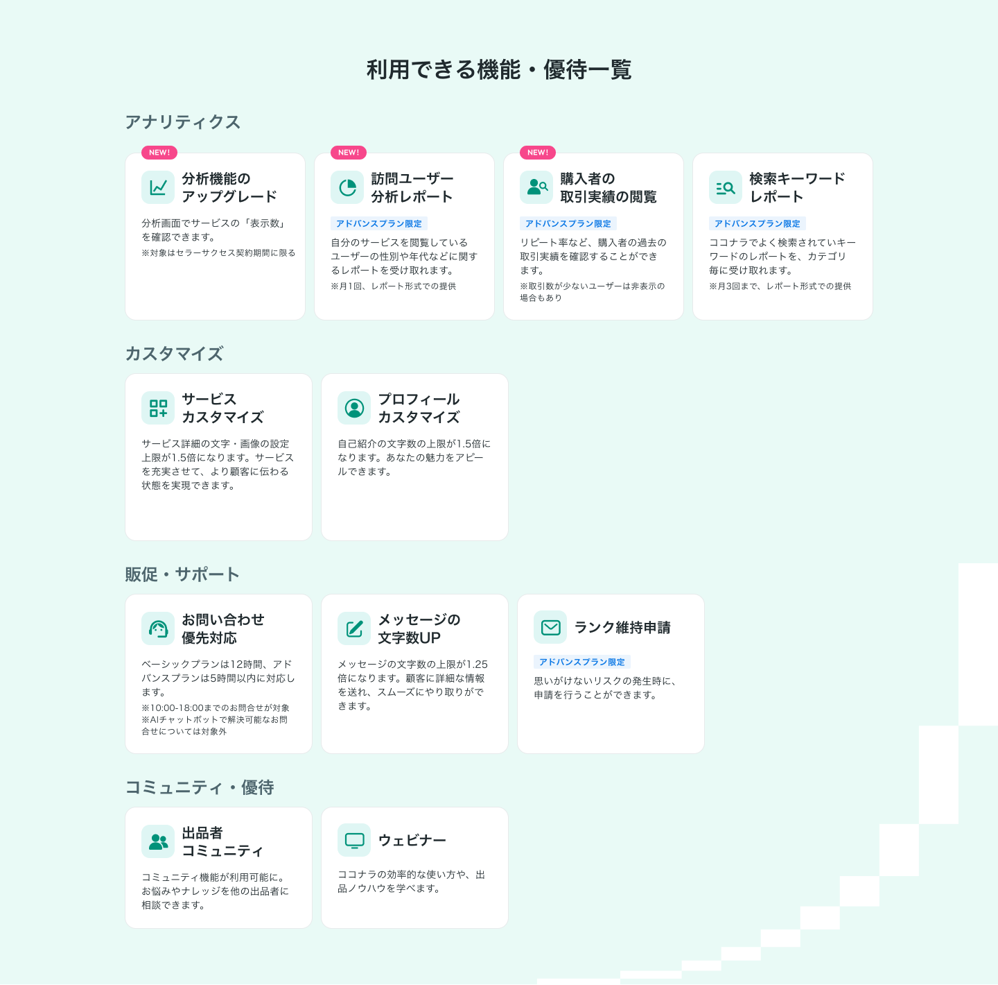 このような背景から、当社は出品者により長く・安心して活躍していただくことを目指し、より「売れる」ためのサポートを行うことを目的に2025年7月に『セラーサポート』を開始し、プロフィールや出品サービスページの文字数・画像数の増加やコミュニティ機能を新設しました。