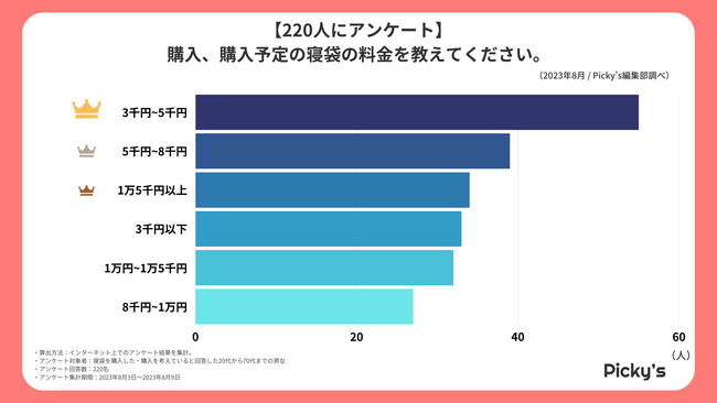 寝袋を選ぶポイントとして1番多く選ばれた回答「価格帯」。