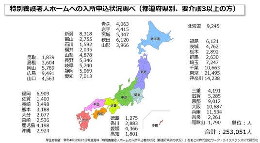 ▲厚生労働省「特別養護老人ホームの入所申込者の状況(令和4年度、都道府県別の状況)」より