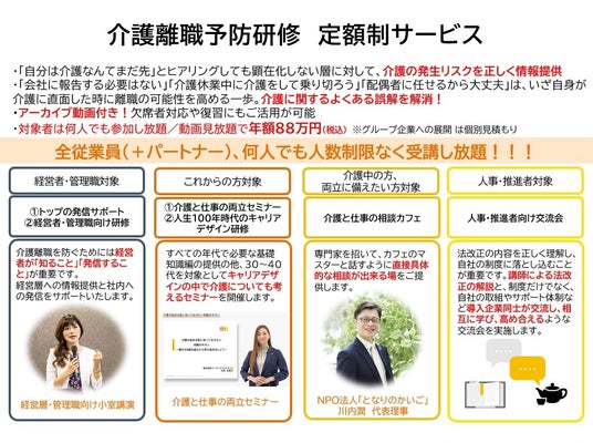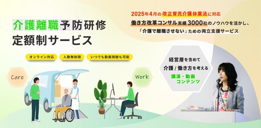 年間 10 万人が介護離職する時代に、当事者だけでなくケア手前世代や経営層・管理職へ幅広く研修可能 ~満足度 97%の研修を受け放題、2025 年 4 月施行の改正育児・介護休業法に対応~