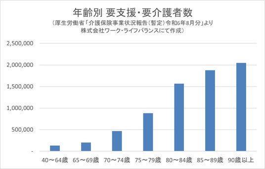 団塊世代が2025年には後期高齢者世代を迎えます。内閣府「令和5年版高齢社会白書」によると、現在75歳以上の方の約3割が要支援・要介護認定を受けており、厚生労働省「介護保険事業状況報告」によるとその総数は700万人以上にのぼります。団塊ジュニア世代は現在50歳台であり、企業・組織の中核を支える人材が多くを占めています。厚生労働省「特別養護老人ホームの入所申込者の状況(令和4年度) に関する調査結果」によると、特別養護老人ホームの要介護3以上の入所待機数は25.3万人、総務省統計局「令和4年就業構造基本調査」によると、介護・看護のために過去1年間に前職を離職した者の数は年間10.6万人にのぼります。
