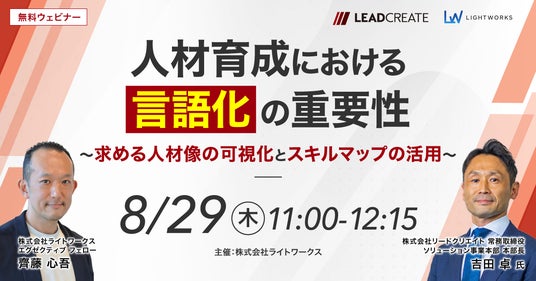クラウド型学習管理システム(LMS)市場で最大の売上シェア*を持つ株式会社ライトワークス(本社:東京都千代田区、代表取締役:江口夏郎、以下「ライトワークス」)は、2024年8月29日(木)に株式会社リードクリエイトと共催し、無料ウェビナーを開催します。
