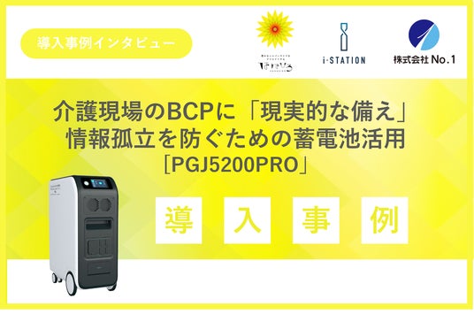 株式会社No.1(本社:東京都千代田区、代表取締役:辰巳崇之、東証スタンダード:3562、以下:当社)のグループ会社である株式会社アイ・ステーション(本社:東京都豊島区、代表取締役:執行 健太郎、以下:IST)が提供する蓄電池が、介護事業を展開する株式会社 はなひろ(本社:福島県須賀川市、代表取締役:塙 啓之、以下:はなひろ)に導入されました。