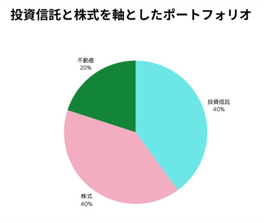 例えば、以下のように投資信託と株式をメインに、不動産を組み込んで確実な資産成長を狙うポートフォリオが見られた。