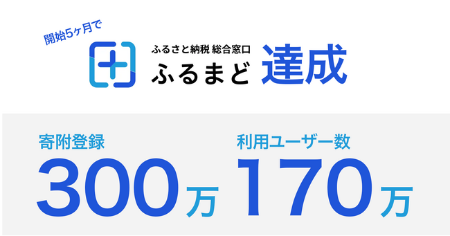 シフトプラス株式会社(代表取締役:中尾 裕也、本店:宮崎県都城市宮丸町3070番1・本社:大阪市西区江戸堀2-1-1 江戸堀センタービル 8F)は、この度新しい「ふるまど」において、初年度(2023年8月~12月)の5ヶ月で300万寄附登録、170万ユーザー登録達成したことをご報告いたします。