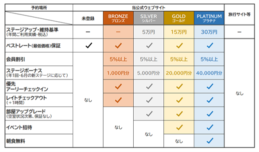 2. 公式サイト限定のご宿泊時特典はそのままに、さらにステージボーナスを進呈