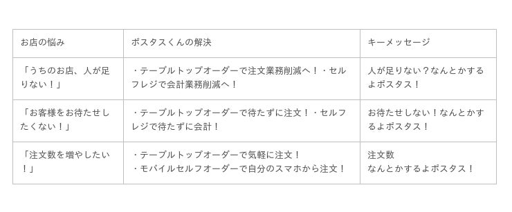 飲食店の「人が足りない!」「お客さまをお待たせしたくない!」「注文数を増やしたい!」といった様々な問題をPOS+(ポスタス)=ポスタスくんが解決します。飲食店のために頑張るポスタスくんの活躍をぜひテレビでご覧ください。