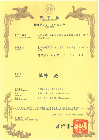 株式会社ティファナ・ドットコム(以下ティファナ)の提供する「AIさくらさん」が、「防犯装置、自動販売機又は情報提供装置、及びプログラム」に関する技術において特許を取得したことをお知らせいたします。