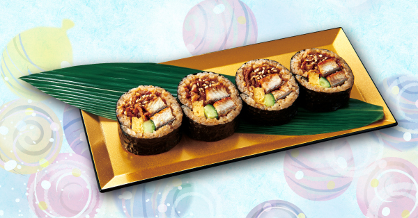たっぷりの鰻と牛肉を香ばしい「たれ舎利」で巻きました。スタミナたっぷり、食べ応え抜群です♪
