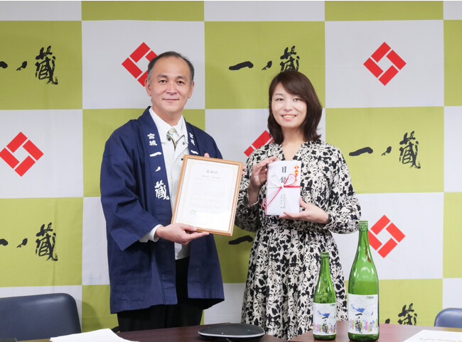 「一ノ蔵特別純米原酒3.11未来へつなぐバトン」の売上金全額寄付贈呈式は今年で12回目。本品の弊社売上金全額を被災した子どもたちの支援を行っている公益社団法人ハタチ基金へ寄付いたしました。
