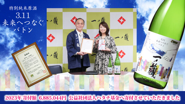 株式会社一ノ蔵(宮城県大崎市松山 代表取締役社長 鈴木 整)は、本年2月15日に発売した「一ノ蔵特別純米原酒3.11未来へつなぐバトン」の出荷完了を受け、5月25日に公益社団法人ハタチ基金へ全額寄付させていただきましたことをお知らせいたします。