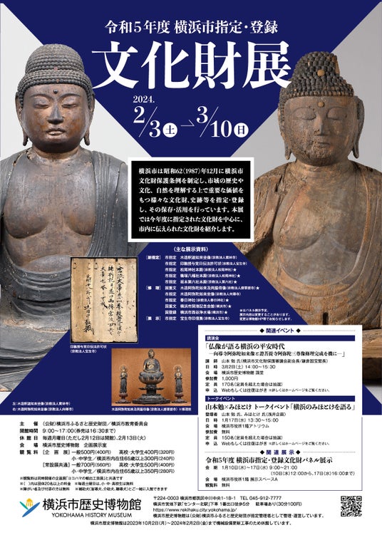 令和5年5月から京都で保存修理を実施していた、重要文化財の證菩提寺(横浜市栄区)阿弥陀三尊像について、修理が完了したことを受けて横浜市歴史博物館で開催する「令和5年度 横浜市指定・登録文化財展」にて公開されます。
