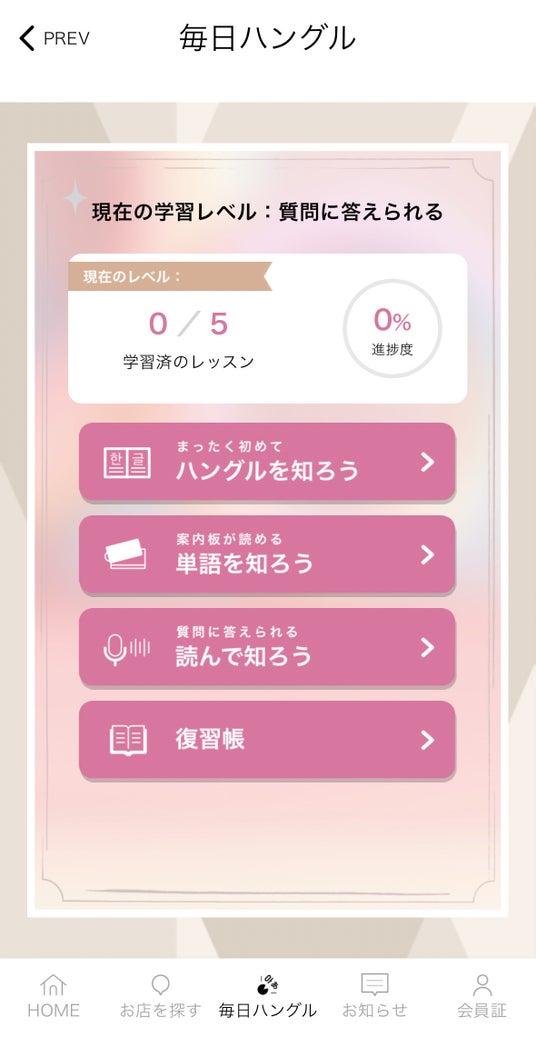 また、K Villageが行うイベントキャンペーン、韓国語教室のレッスン予約機能、韓国留学の申込なども提供しています。