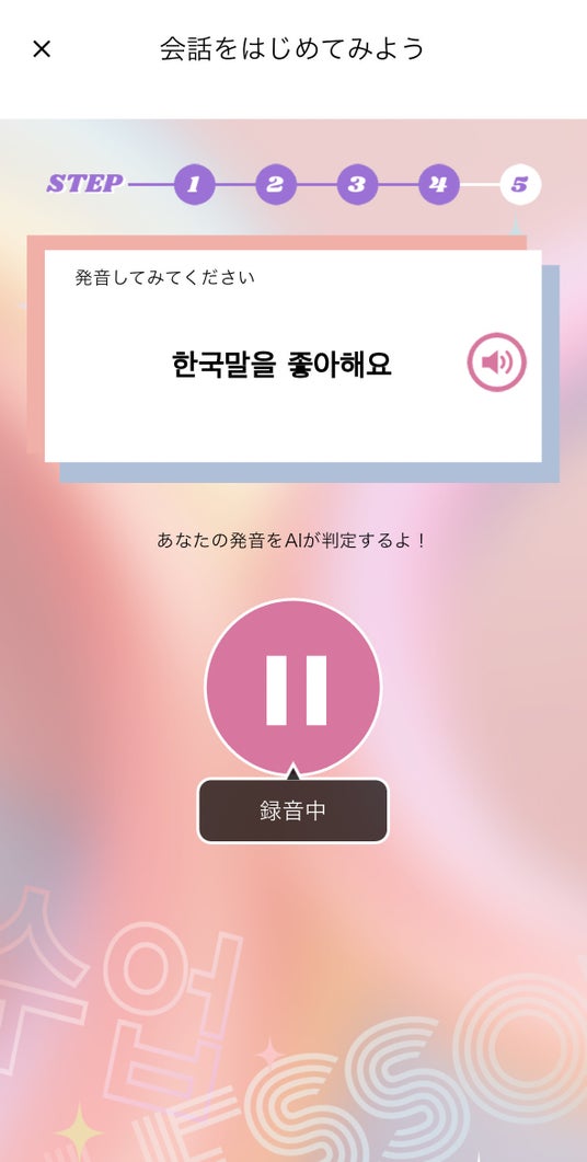 『毎日ハングル』は、AIを活用した発音チェック、韓国語の基礎、単語・例文練習など、スキマ時間を活用して、1日1回韓国語を楽しめる韓国語学習コンテンツです。
