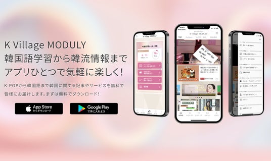 K Village MODULYは、韓国語学習から韓流情報までユーザーの興味のある情報をひとつのアプリで気軽に楽しめます。
