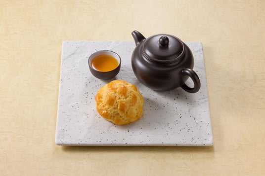 外はサクサク、中にはカスタード餡が入った香港スイーツ定番の「パイナップルパン」と料理長おすすめの中国茶「鳳凰単叢」もお楽しみいただけます。
