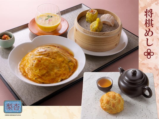 将棋飯として話題の天津飯やパイナップルパンを中国料理「梨杏」で期間限定でお楽しみいただけます。シャインマスカットのエクレールやひつまぶしなど、その他のレストランでも将棋飯・将棋おやつをご用意。