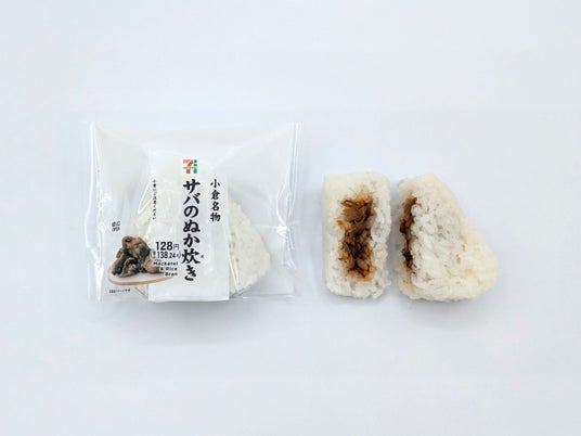 サバのぬか炊きおむすび山椒・唐辛子の爽やかな風味、ぬかのほのかな酸味、サバの旨みを引き出した一品です。素材の味を楽しんでもらえるよう、あえて海苔を巻かない塩おむすびで仕上げています。