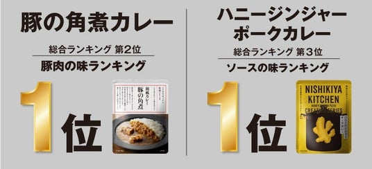 ニシキヤキッチンからは、「豚の角煮カレー」「ハニージンジャーポークカレー」の2商品が第1位を獲得しました。