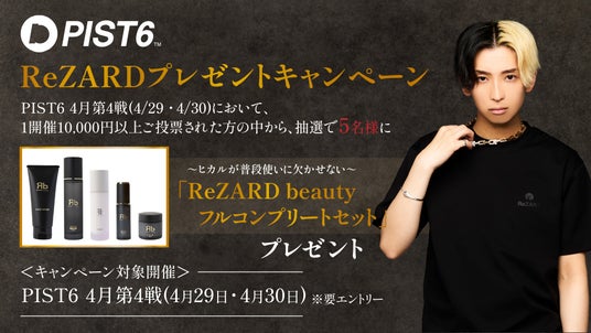 2024年4月29日(月・祝)・4月30日(火)開催の「PIST6 4月第4戦」において、「PIST6公式投票サービス」で1万円分以上ご投票された方の中から、抽選で5名様にヒカルが普段使いに欠かせない「ReZARD beauty フルコンプリートセット」をプレゼント!