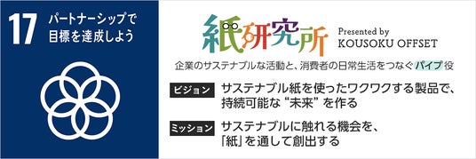 高速オフセットの紙研究所プロジェクトの1つとして、サステナブル紙の商品・サービスを通じて「SDGs17番:パートナーシップで目標を達成しよう」の達成から持続可能な社会への実現を目指したいと思っております。