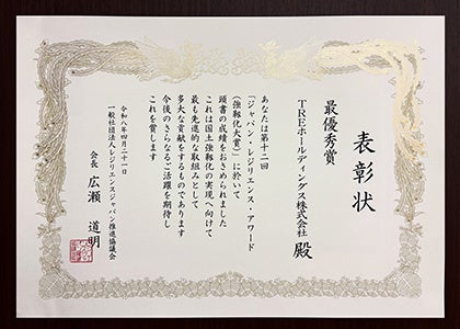 TREホールディングス株式会社は、一般社団法人レジリエンスジャパン推進協議会が主催する「第12回ジャパン・レジリエンス・アワード(強靭化大賞)2026」において最優秀賞を受賞いたしました。