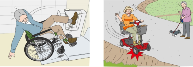 車椅子の投げ出され死亡事故のイメージ 電動車椅子の転落死亡事故のイメージ