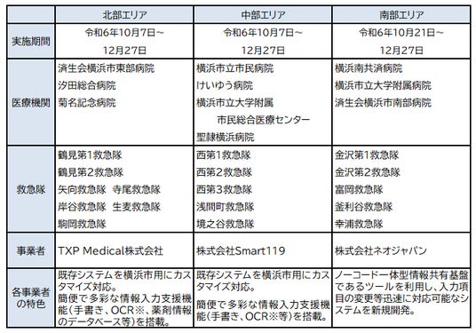 今後も増加が予想される救急需要に対応していくため、救急隊と医療機関とで傷病者の基礎情報(名前・症状等)を共有するなど救急活動の円滑化に向けた実証事業を、横浜市の3つの地域で実施します。