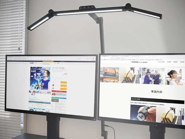 モニター2台でも広々照らせるクランプ式3面LEDライト