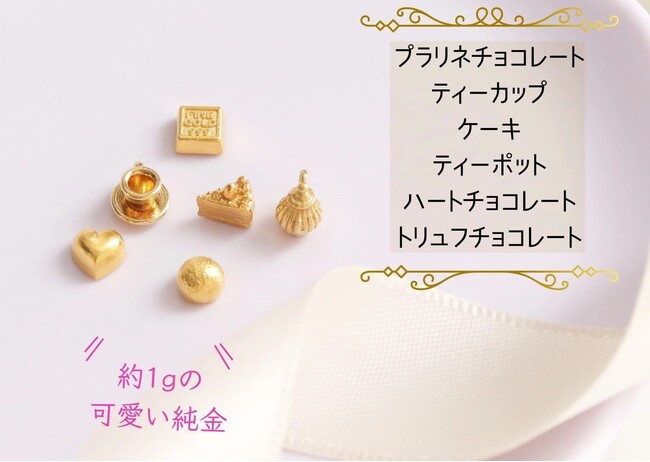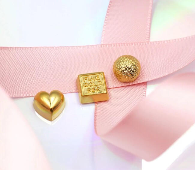 見た瞬間に思わず「可愛い!」と言ってしまう、ミニチュアの純金製チョコレートです。持っているだけで心がときめく、本物の純金を自分へのご褒美にも!